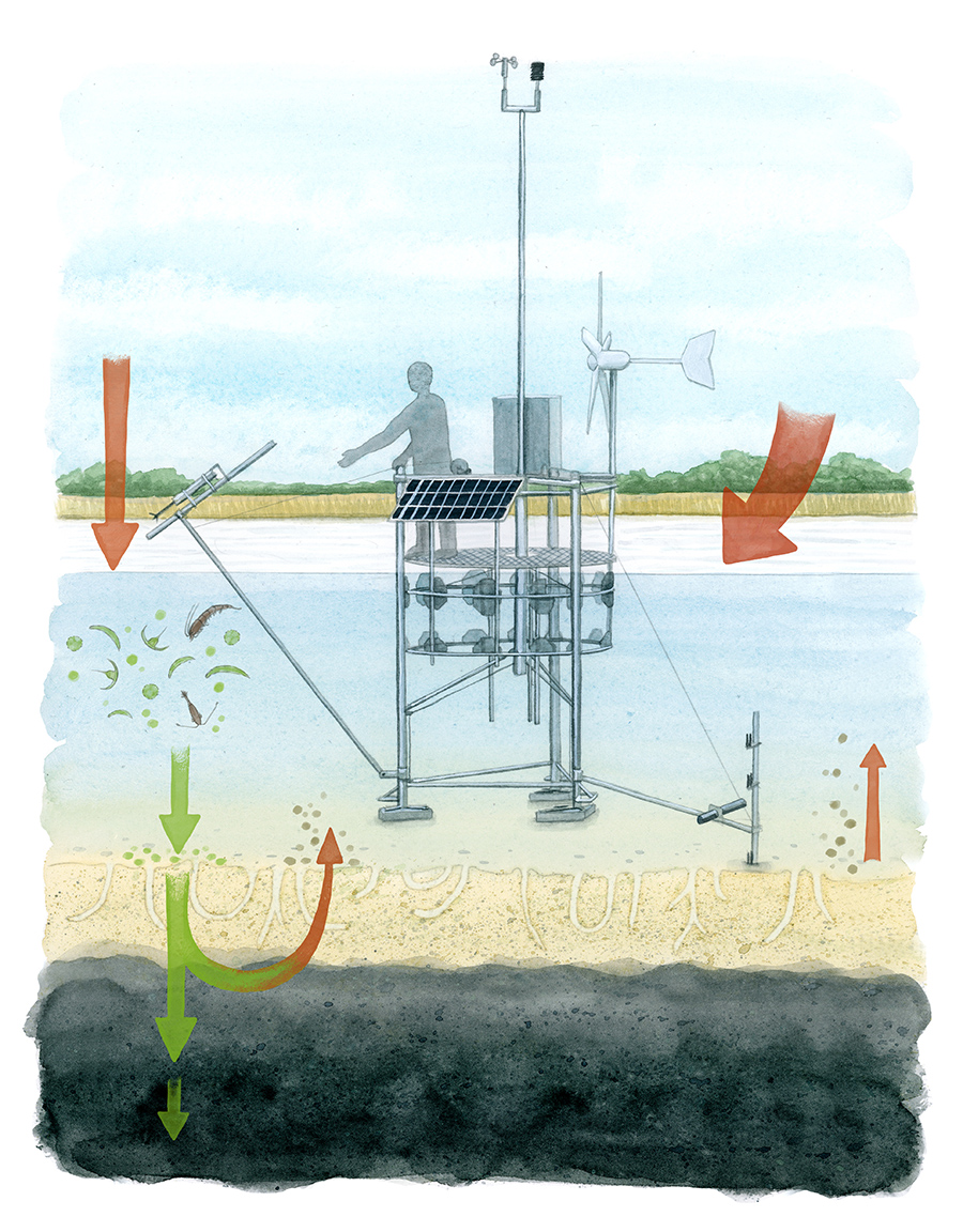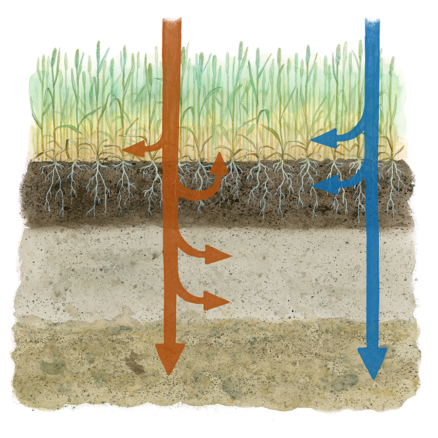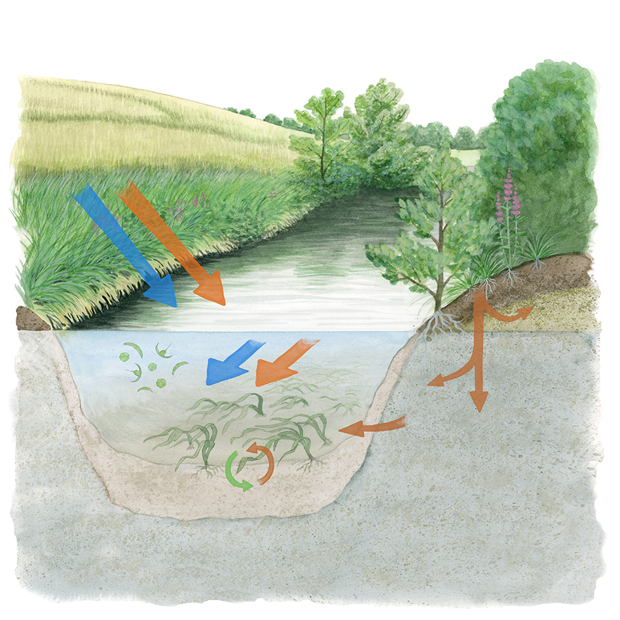 4 Illustrationen für ein Poster zum Thema Nährstoffeintrag durch Landwirtschaft.